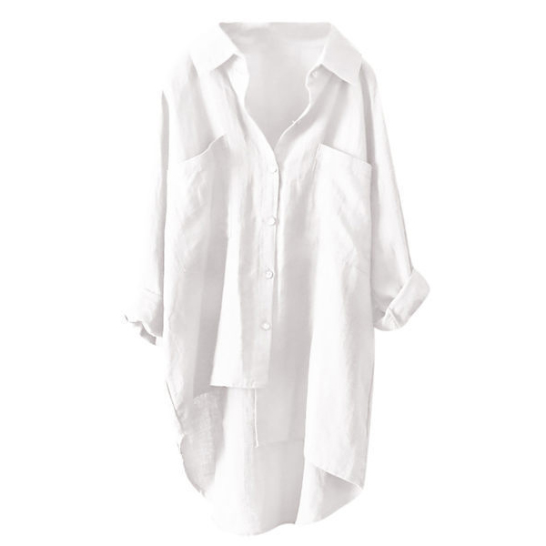 เสื้อเชิ้ตผ้าคอตตอนลินินมีกระเป๋าคู่